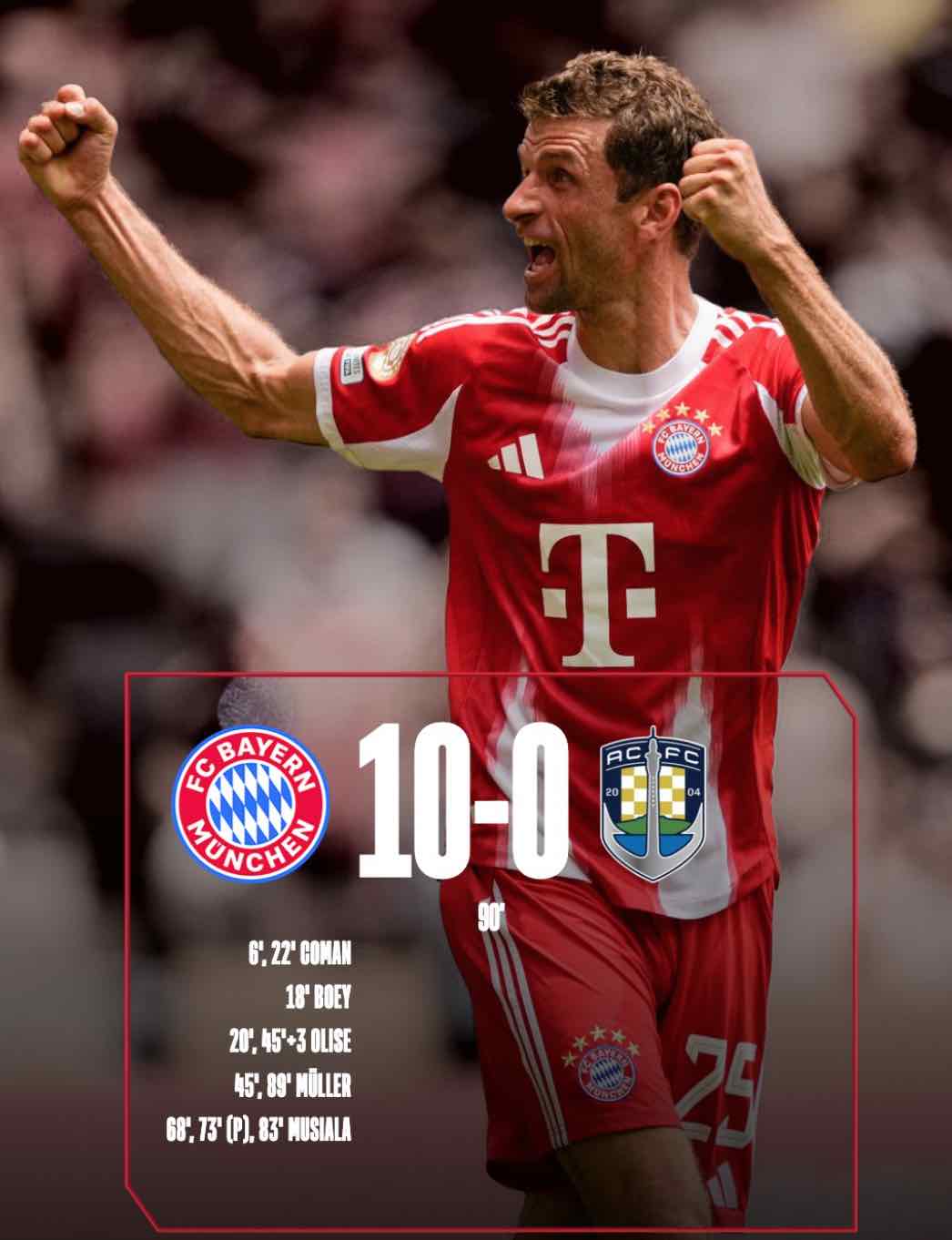 Desde el primer minuto del encuentro, el dominio del conjunto alemán fue absoluto. Con una presión asfixiante y transiciones veloces, Bayern se adueñó del medio campo y castigó cada error de su rival. Las diferencias físicas, técnicas y tácticas fueron tan marcadas que, ya en la primera mitad, el marcador reflejaba una goleada sin precedentes.