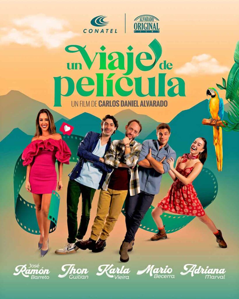 Protagonizada por José Ramón Barreto, Jhon Guitián, Karla Vieira y Mario Becerra, con el debut en la gran pantalla de la hermosa Adriana Marval, esta producción promete una historia fresca y cautivadora, enmarcada por los paisajes más bellos e imponentes de Venezuela. Con una puesta en escena impecable y una narrativa que combina el romance con la aventura, “Un viaje de película” lleva al espectador por un recorrido inolvidable lleno de emoción, risas y momentos entrañables.